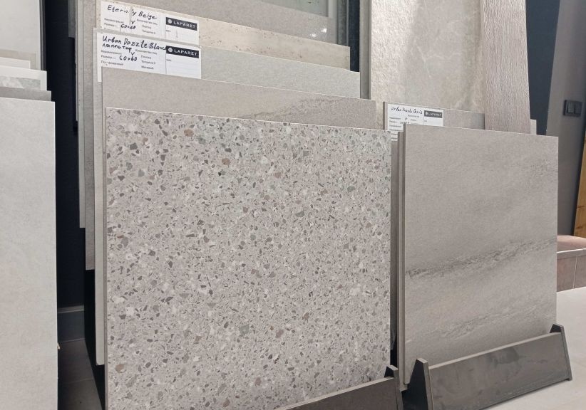 По словам Светланы Гореловой, керамогранит обладает высокой прочностью — выдерживает нагрузку до 400 кг на кв. см, что защищает поверхность от повреждений при падении тяжелых предметов. Также материал практически не впитывает влагу (менее 0,05%), что делает его идеальным для влажных зон.