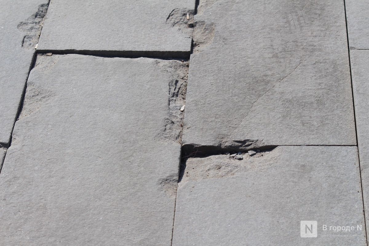 Как отмечают корреспонденты, на улице Большая Покровская и площади Горького из года в год повторяется проблема с покрытием, которое становится небезопасным для передвижения. Кроме того, на главной улице города выявлены повреждения деревянных частей скамеек, а металлические элементы освещения покрылись грязью и ржавчиной.