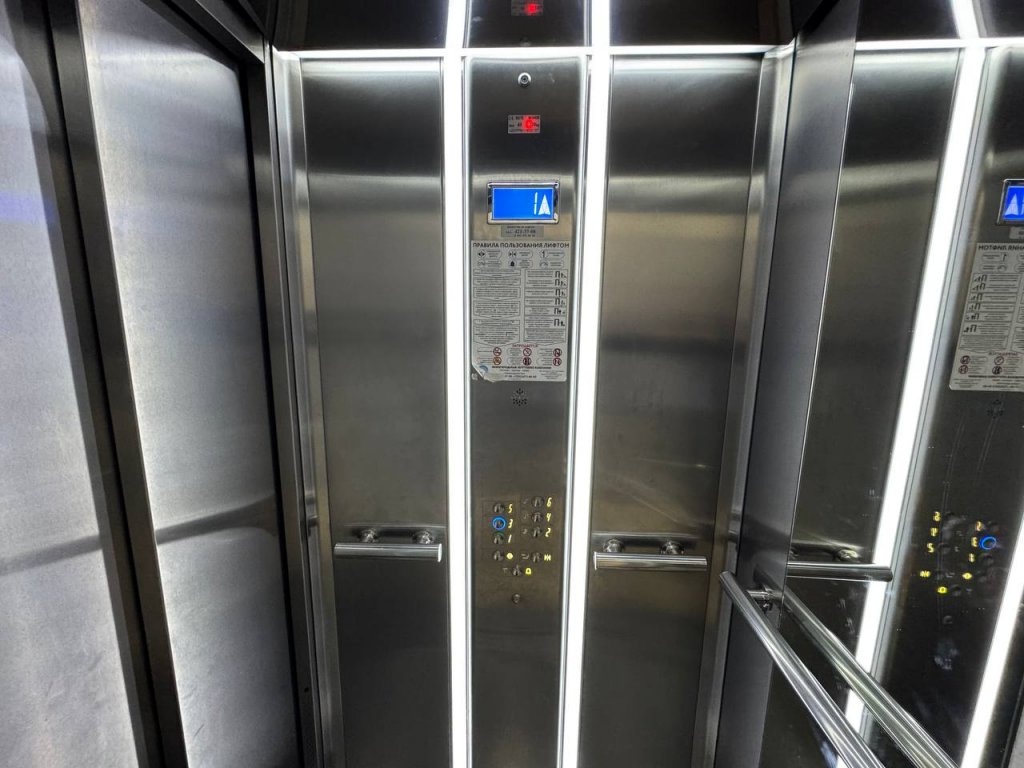 Лифт оснащен смарт-контроллерами с поддержкой BLE — технологии, используемой в современных смартфонах. Пользователи регистрируются в приложении, выбирают этаж и просто подходят к лифту — он автоматически приезжает и поднимает на указанную точку. При необходимости можно выбрать этаж через цифровую панель вручную.