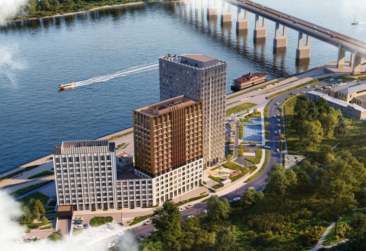 Напомним, в состав комплекса войдут три разноэтажные жилые секции и три трехэтажные урбан-виллы. В планах девелопера создать в этой локации новое общественное, которое будет доступно для всех нижегородцев. Так, на благоустроенной набережной появится променад вдоль Оки с летними верандами и кафе. А в отреставрированной Куйбышевской водокачке разместятся отель, термальный комплекс, ресторан, арт-пространство для выставок, парк с современными скульптурами и каскадная лестница-амфитеатр у воды.
